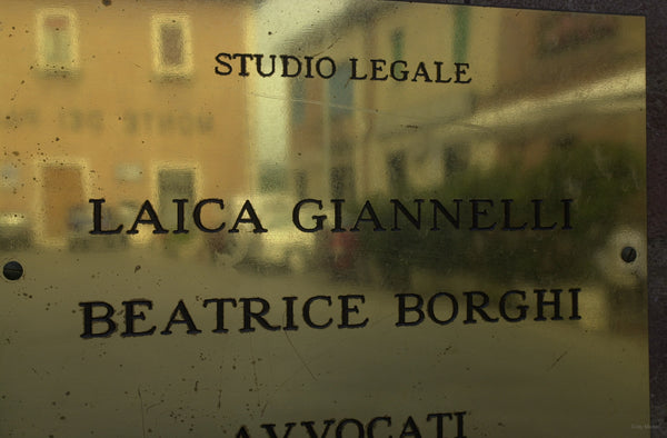 Brass Sign with Reflection, Tuscany