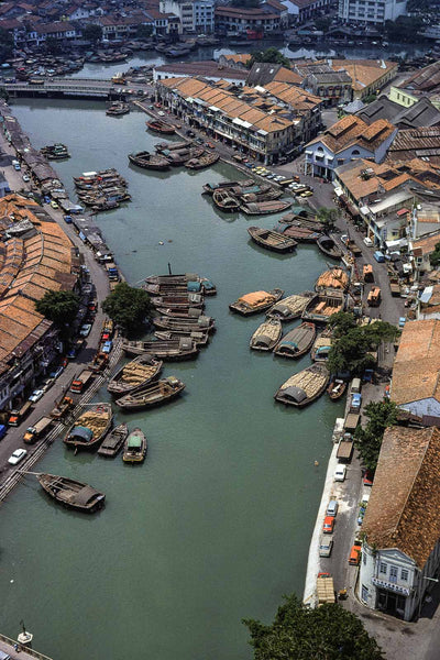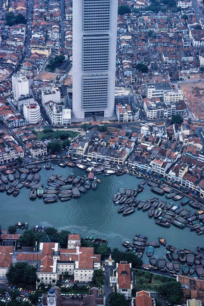 Aerial of Canal, Boat Houses, Singapore
