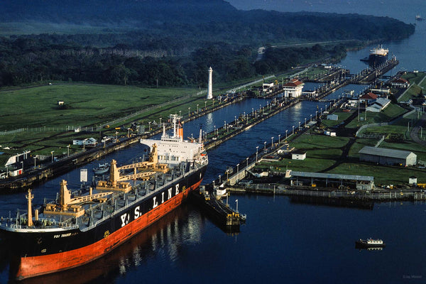 Aerial of Ship Leaving Locks, Panama Canal