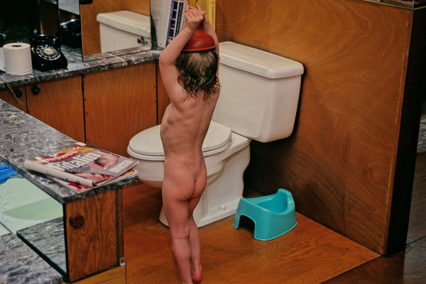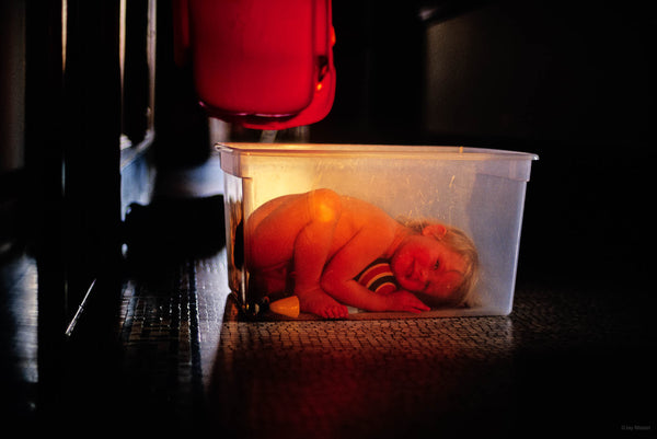 AMANDA: Most fathers take their children inside during a snowstorm. Most fathers tell their children not to use expensive technical equipment as a jungle gym. Most father do not publish pictures of their toddlers—via feats of incredible gymnastic flexibility—inspecting their own reproductive anatomy. My father is not most fathers. He is a man who looked at all of the above scenarios and thought to himself, “what a shot!” best not disturb the creature in her natural environment. But that impulse is exactly what makes this body of work more than just the saccharine showing off of an old, doting father.