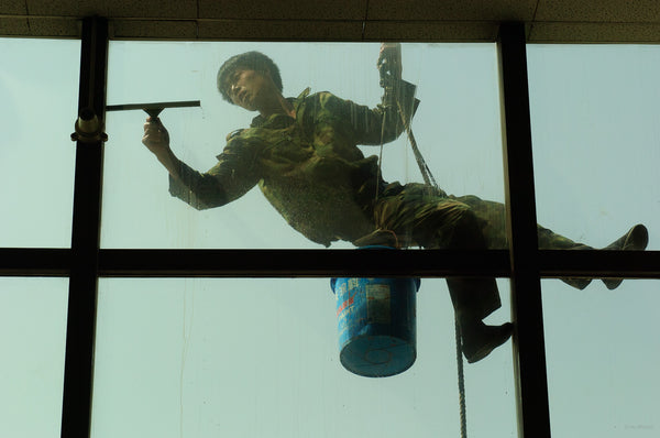 Man Cleaning Window at Airport, Beijing