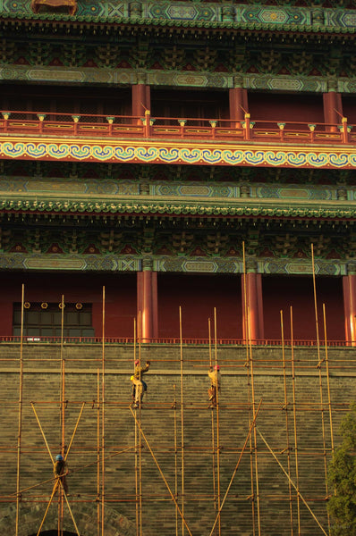 Ornate Building, Men on Scaffolding, Beijing