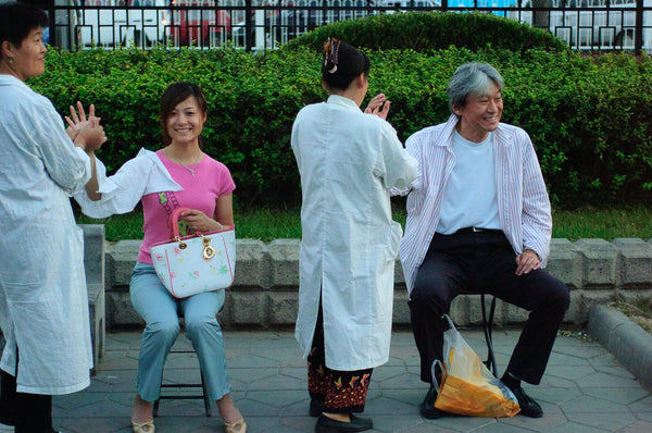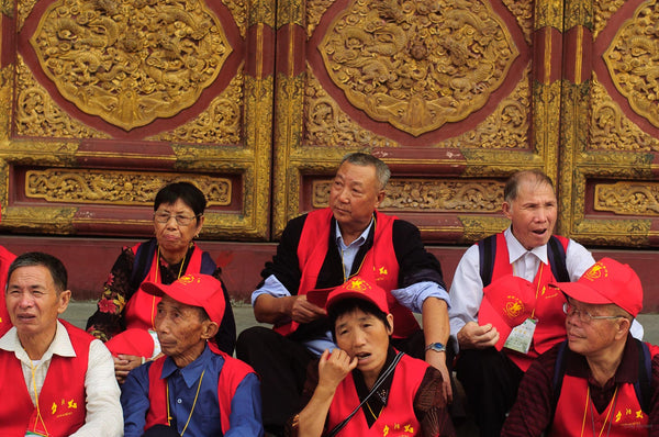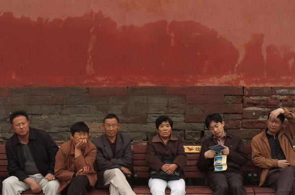 Row of People on Bench, Beijing