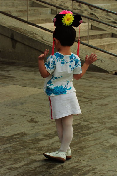 Girl with Flowers in Hair, Gesturing, Beijing