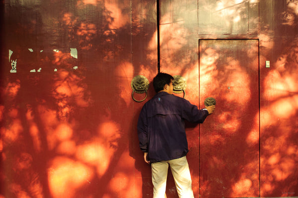Man at Red Door, Shadow of Tree, Beijing