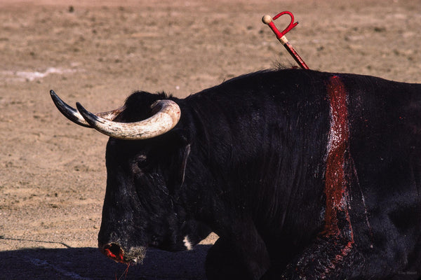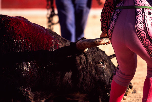 Why is this called a sport? The only loser is the bull. The bull is maimed and wounded at the outset by the banderilleros and picadors so that he can’t move without pain and agony.