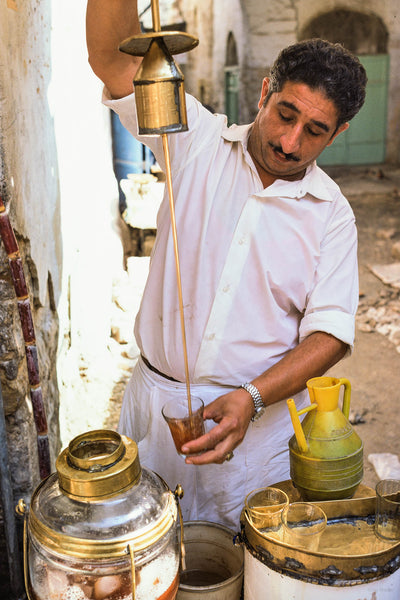 A minute passed and suddenly six of the biggest Arab guys I have ever seen come out toward us and one says in English, “Why are you stuck in our courtyard with a wheel in the hole? Come in and have tea.”