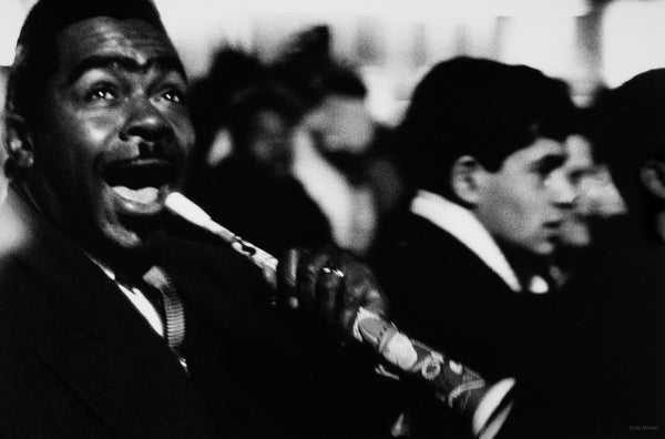 The subject, though, was amazing, deafening sounds from horns, huge masses of peole, general good vibrations, pockets of violence, tenderness, people so packed that if you were in there your biggest job was to avoid being swept off your feet. Consequently, the shooting was always on the edge of a mob, where I could at least lift up the camera.