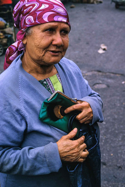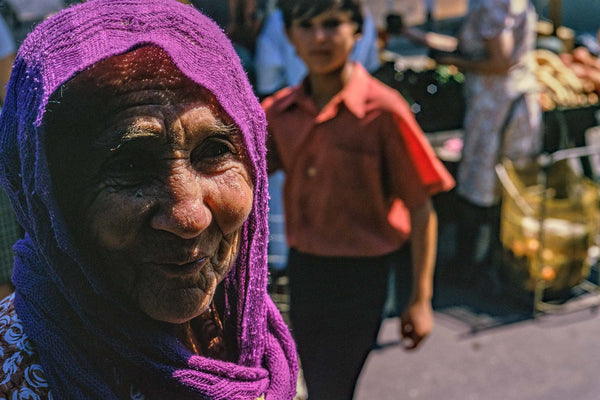 Older Lady, Head with Purple Scarf, São Paulo